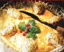 Creme zur Hälfte mit 100 g Mohnmasse bzw. mit Orangenschale mischen. Von Mohncreme Nocken abstechen. Auf die Orangencreme setzen.