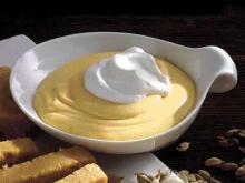 1.Die Sahne mit dem Zucker steif schlagen. Den Mango-Pulp vorsichtig darunter heben.