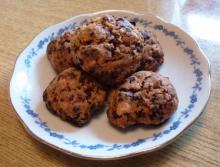 3. Dann Cornflakes, Schokolade und kleingehackte Rosinen unter den Teig mengen, dabei nicht zu stark rühren.