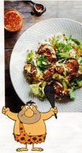 3. Alle Salatzutaten mischen und auf einer Platte anrichten. Die Leber darauf verteilen, alles großzügig mit Dressing beträufeln, mit Sonnenblumenkernen bestreuen.