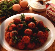 Das Ei mit dem Hackfleisch, der fein gehackten Bratwurst, der Hälfte der Petersilie, dem in Milch eingeweichten und gut ausgedrückten Brötchen gut vermengen. Mit Salz und Pfeffer abschmecken; aus der Masse Klößchen formen, leicht in Mehl wälzen, in der erhitzten Butter von allen Seiten braten und aus der Pfanne nehmen. In die Pfanne den Martini, die Brühe, die restliche, gehackte Petersilie, etwas Butter, Salz und Pfeffer geben; kurz aufkochen lassen, die Fleischklößchen und das Pomito hinzufügen und weitere 5 min kochen.