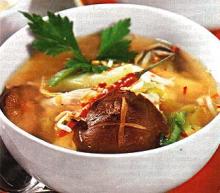Fleisch etwa 20 Minuten in der kochenden Suppe garen. Die Kartoffeln schälen, waschen und in Stifte schneiden. Porree in feine Ringe schneiden. Pilze putzen und die Deckel kreuzweise einschneiden. Chilischoten der Länge nach aufschneiden, entkernen und fein hacken.